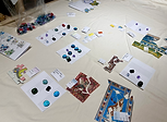 Board games are physical, so material and quality matters. I have a lot of complex shapes and irregular edges for my artifact pieces, so I had to be inventive when looking for custom manufacturers. I tried to look at customary price tag labels, stickers, bookmarks, wooden jigsaw, coins, tokens. In the end, I decided to have the artifact pieces plastic sealed , and material tokens to be thick cardboard because of their light weight, durability, visibility, and space-saving quality.