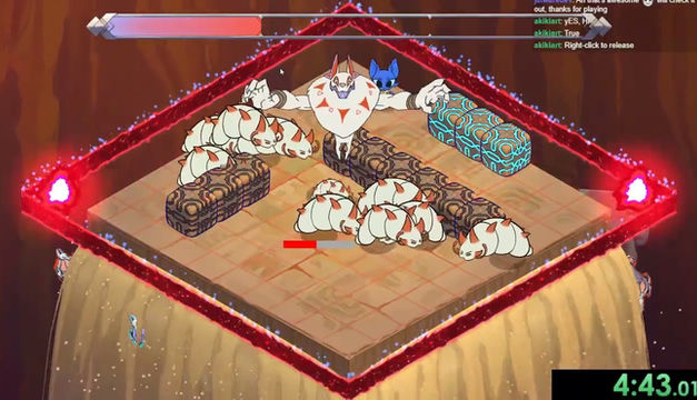 A 3-stage boss arena demo for a rogue lite game in which player is a cat genie trying to escape a dessert temple. This is a creative take on the GMTK jam topic — loop. The player has to shoot their projectiles towards the out wall of the arena, the projectile would circle around the wall until player shoots them towards the enemy. The projectiles doesn't deal damage without entering the outer wall.